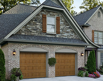 Openings in Carriage House Style. Looks can be deceiving. From a distance, you see an authentic carriage house door. Up close, they go up and down like traditional garage doors. Available in Steel and Wood.
